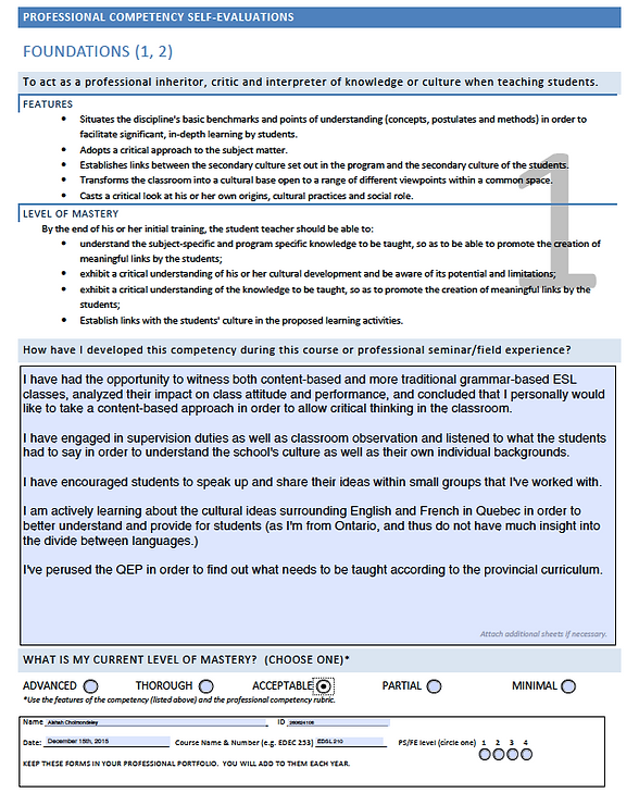 It is important for an ESL teacher to note that language plays a large role in student's cultures, whether it is the strong role that French may play in a Quebecois identity, the proud self-identification of someone as an Anglophone, or the other home languages that people bring and fight to maintain in Quebec. In my field experience, I made sure to pay attention to student linguistic backgrounds specifically, and the way they perceived English and/or French.